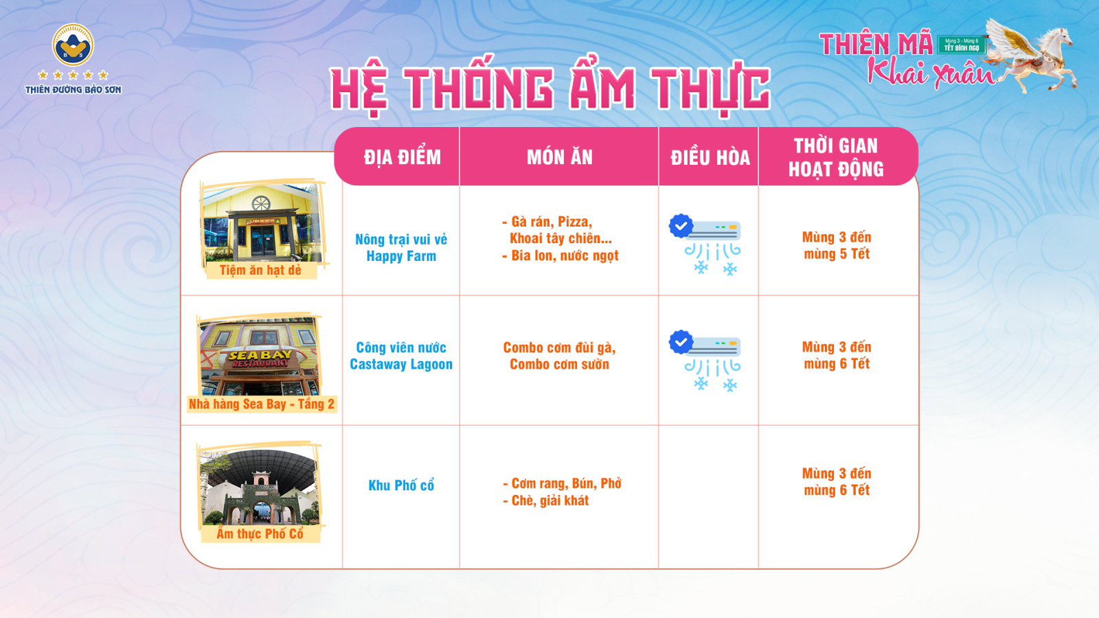 LỊCH HOẠT ĐỘNG ẨM THỰC TẾT BÍNH NGỌ (Mùng 3 - 6 Tết)