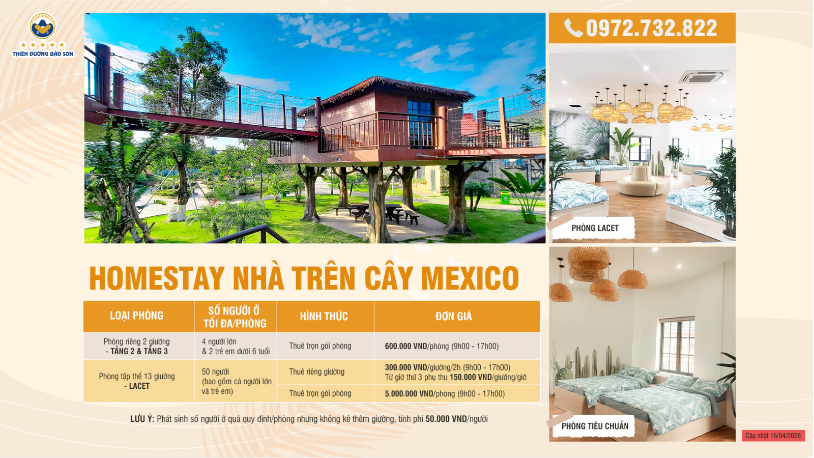 BẢNG GIÁ NHÀ NGHỈ CỘNG ĐỒNG