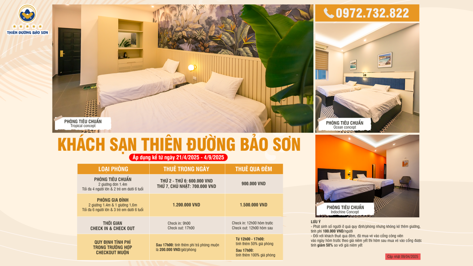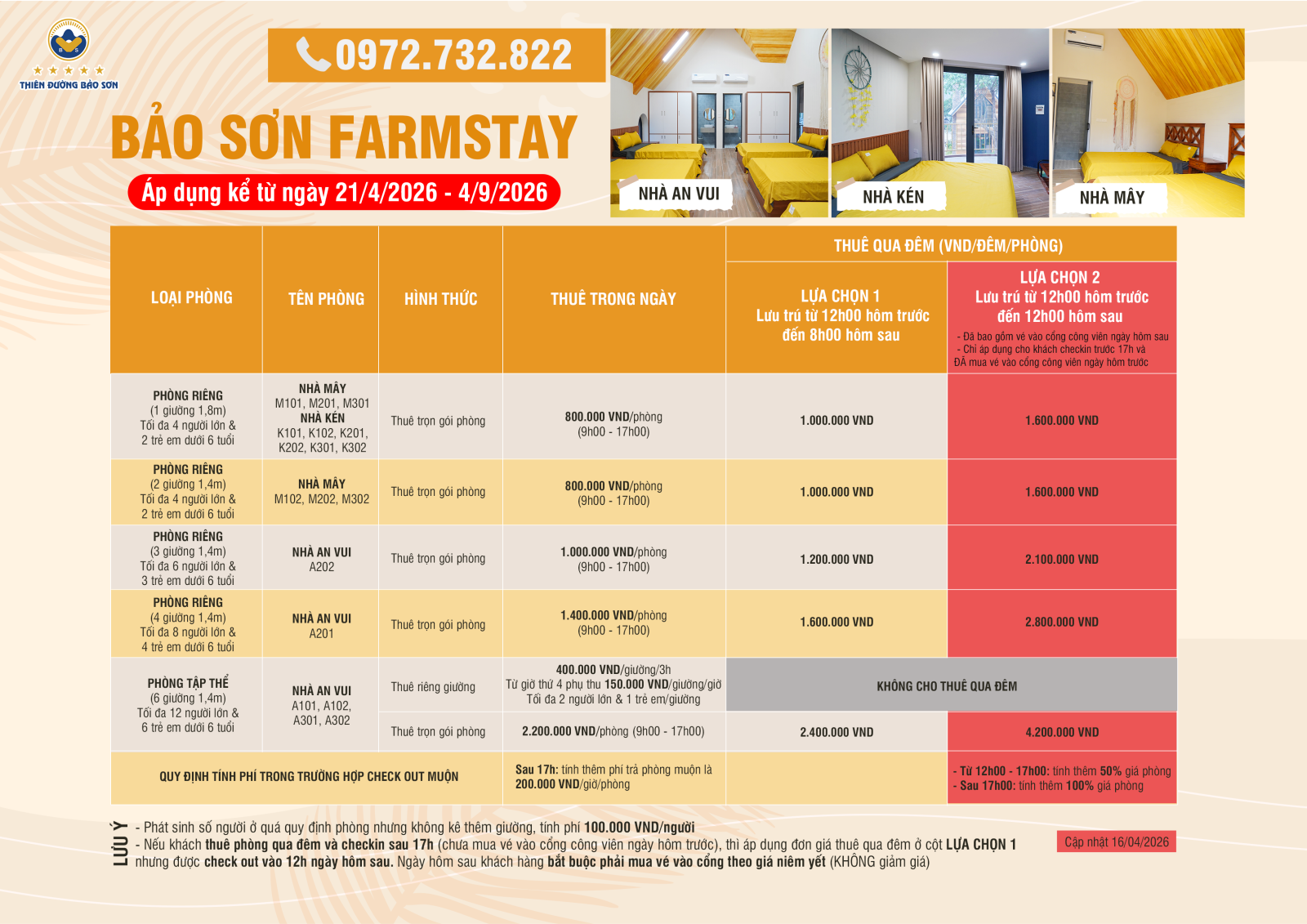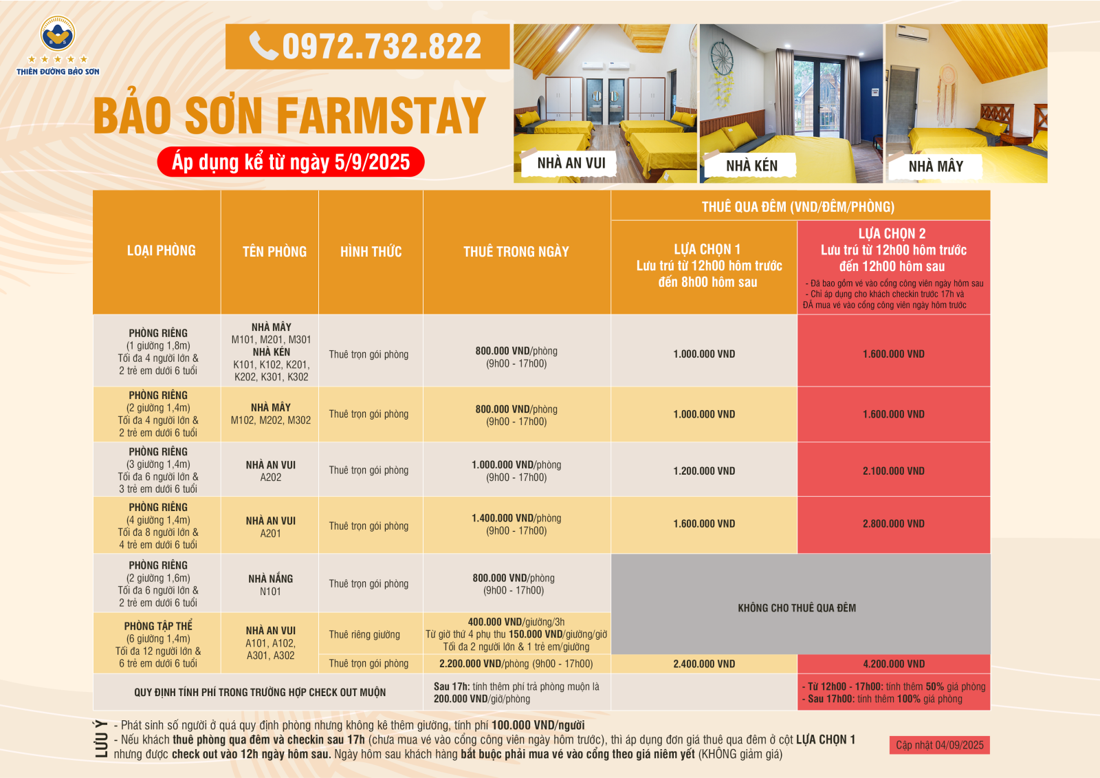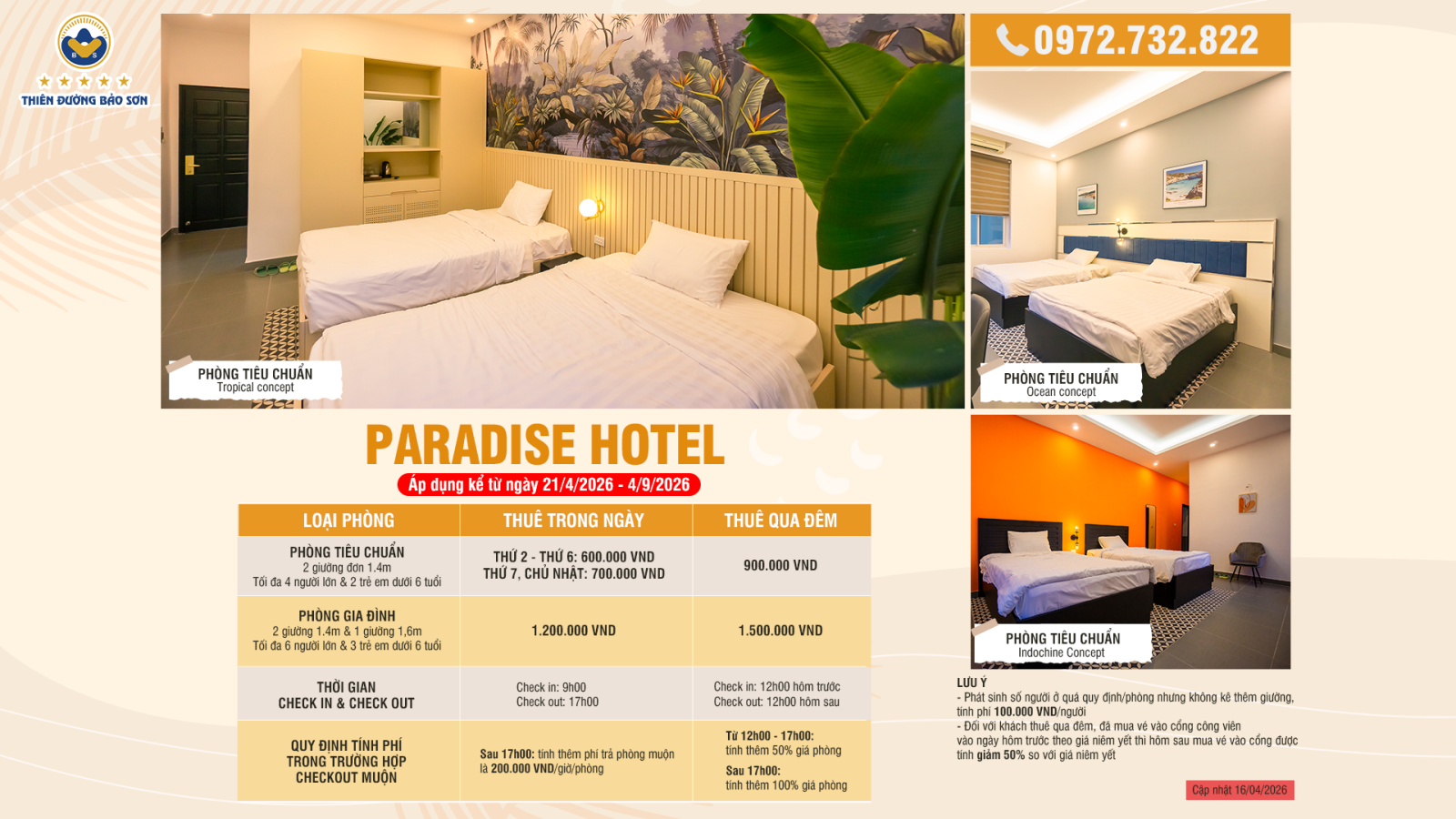 Bảng giá khách sạn Baoson Paradise (Áp dụng từ 5/9/2025)