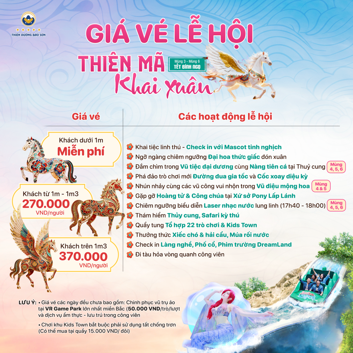 Trong thời gian diễn ra lễ hội Tết Bính Ngọ 2026, Công viên Thiên đường Bảo Sơn áp dụng mức giá vé trọn gói dành cho du khách như sau: