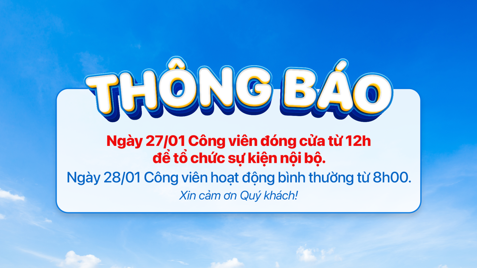- Thông báo đóng cửa công viên ngày 2/10/2025
